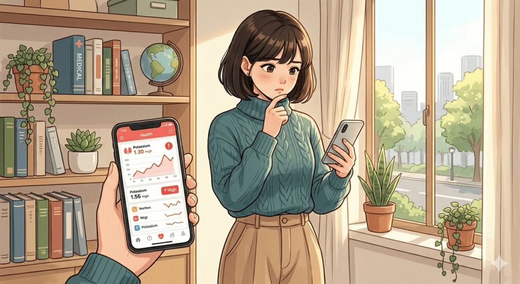 하지만 앱을 켜고 결과지를 마주하는 순간, 수많은 영어 약어와 복잡한 숫자들 앞에서 막막함을 느끼기 쉽습니다. 오늘은 신장 환우라면 병원 앱에서 가장 먼저, 그리고 가장 유심히 살펴봐야 할 핵심 수치 3가지와 함께, 제가 과거 가슴이 뜨끔했던 아찔한 기억을 남긴 ‘칼륨’ 수치의 중요성에 대해 깊이 있게 다루어 보겠습니다.